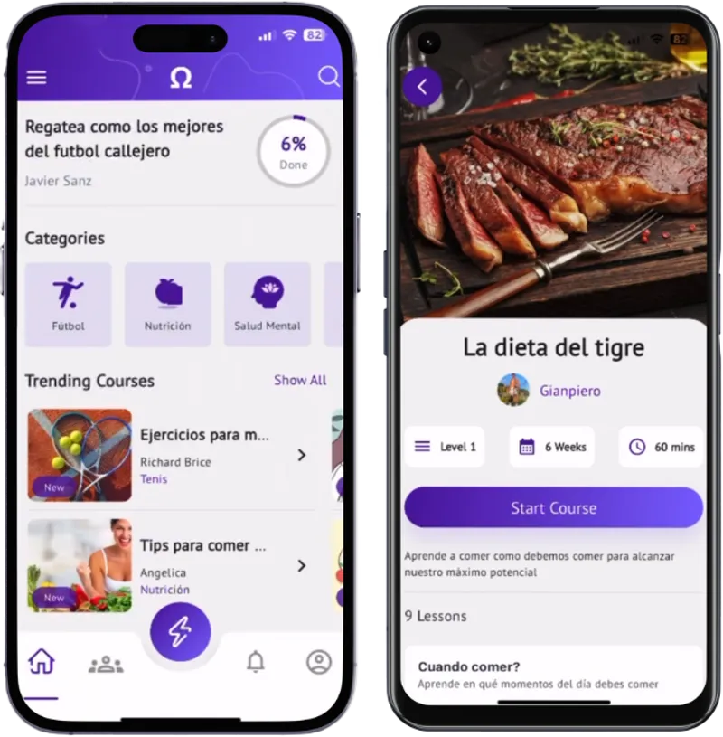 Los usuarios pueden ingresar y ver cursos y blogs relacionados a fitness. Pueden filtrar por categoría o instructor. Pueden hacer comentarios y preguntas, dejar likes/dislikes y traquear su progreso en cada curso.